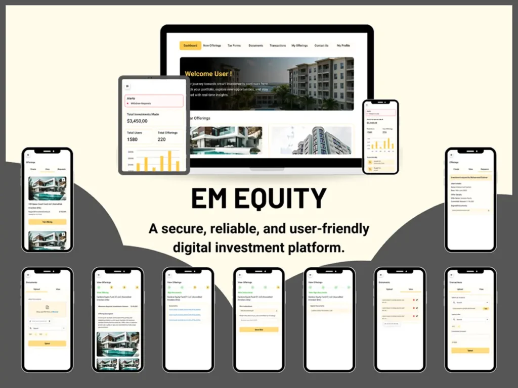 EM Equity is a fin tech platform designed to simplify investment management for both individual investors and businesses. The client needed a platform that balanced security, trust, and ease of use, while also offering a modern and professional digital experience.